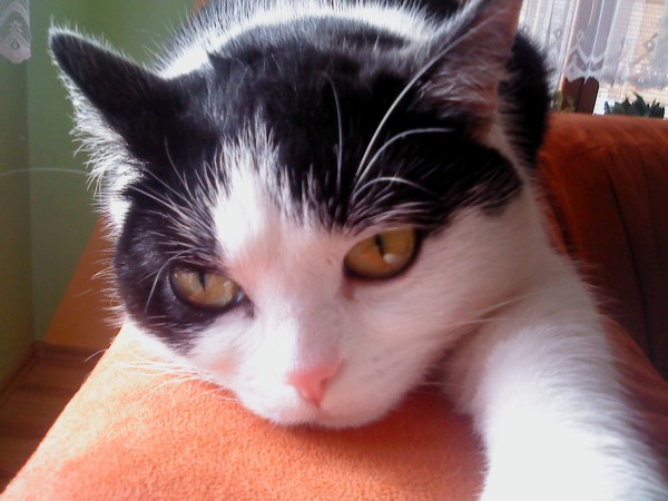 No tady je zrovinka unavená a válí se na sedačce na tom opěradle.